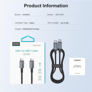 Cablu USB Type C – USB Type C Choetech XCC-1003 PD 60W 1.2m negru