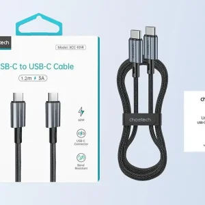 Cablu USB-C – USB-C PD 60W 1.2m negru textil XCC-1014 Choetech XCC-1014-BK