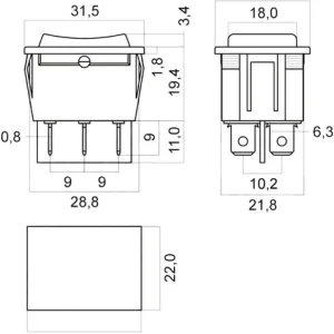 Intrerupator 15A-250V ON-OFF cu retinere 4PINI 28x22mm LED rosu KCD4 GBC 24.2315.00