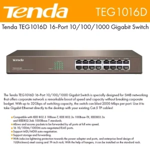 Switch Tenda TEG1016D 16 porturi Gigabit desktop sau montabil in rack