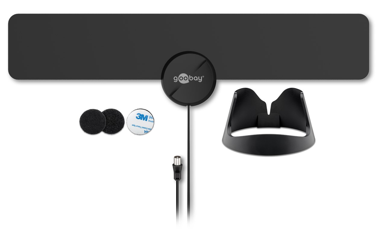 Antena de interior Full HD ultra-plata 16dBi filtru GSM/LTE/4G DVB-T DVB-T2 activa Goobay 67183.