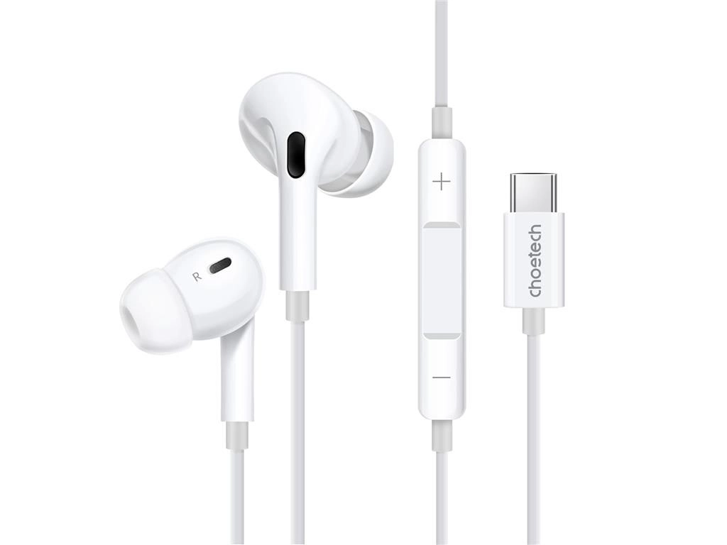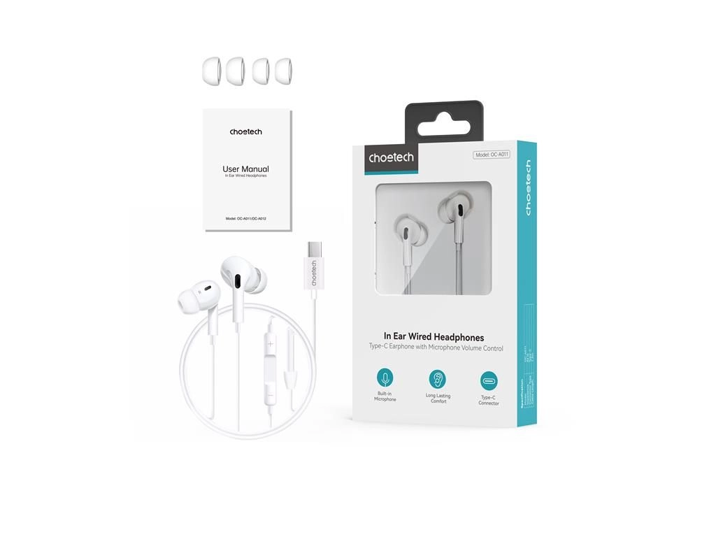 Casti In-Ear cu fir Choetech OC-A011-WH USB-C microfon reglare volum silicon alb, EAN 6932112106629.