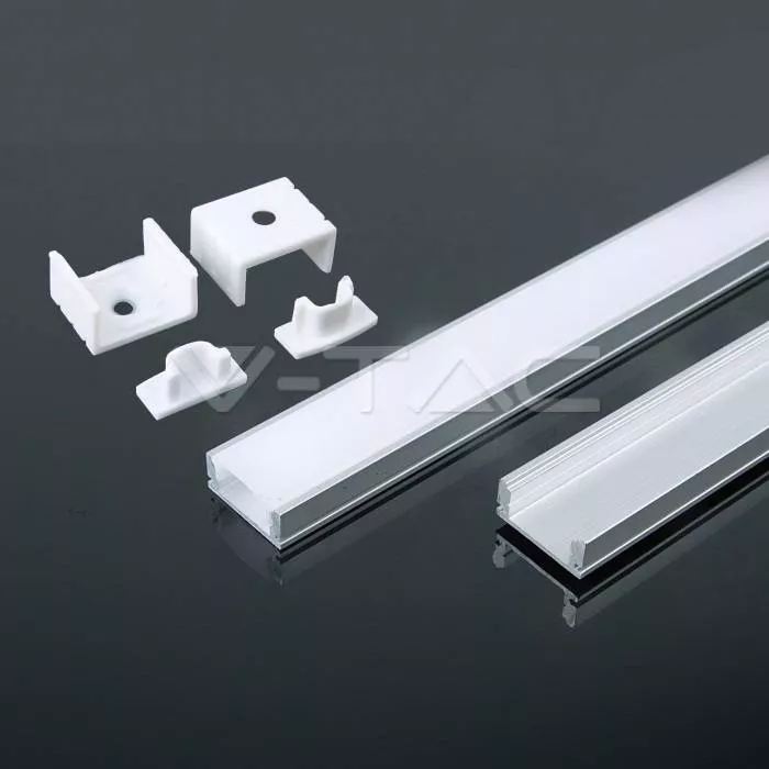Profil aluminiu 2m pentru Banda LED 17.4mm x 7mm cu difuzor alb mat si accesorii prindere/capace V-TAC