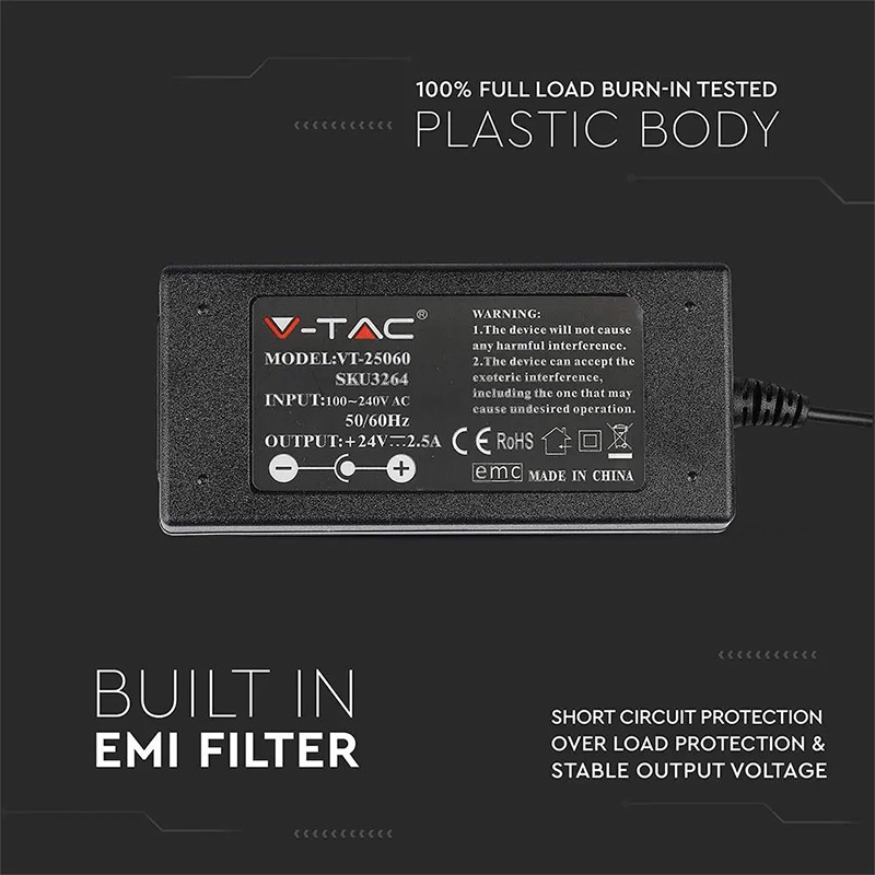Sursa alimentare SMPS SLIM 24V 2.5A 60W V-TAC SKU-3264.